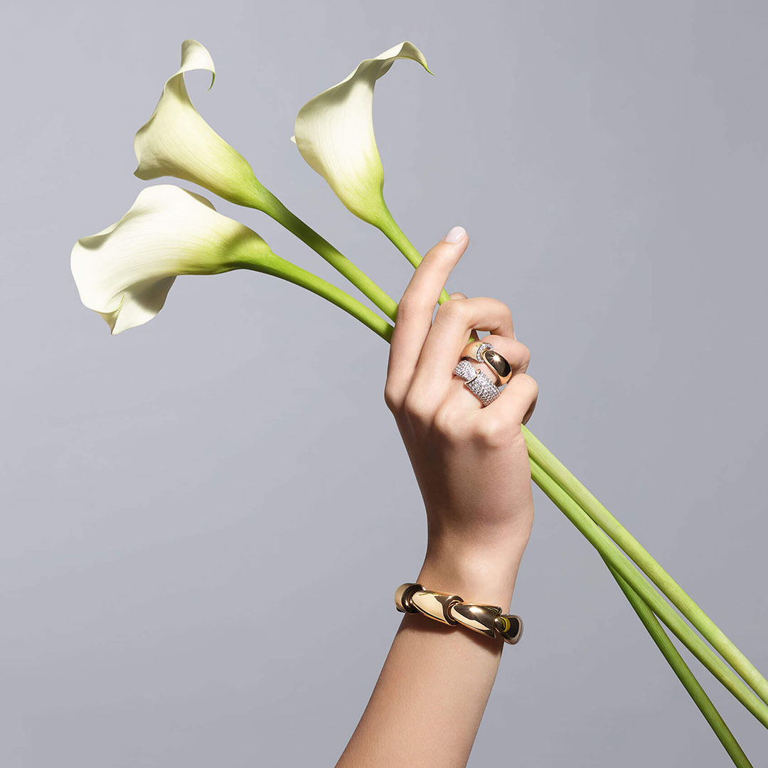 Vhernier creates by drawing inspiration from the pure forms of modern sculpture: Constantin Brâncuși, Barbara Hepworth, Max Bill are some of the sculptors it looks at, for its bold and essential jewelry. It is also inspired by the body, with its volumes and movements.
